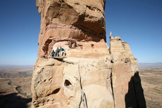 En la región de Tigray muchas de las iglesias cristianas están talladas en la roca. Podemos llegar a algunas de ellas, como la de Abuna Yemata Guh, escalando.